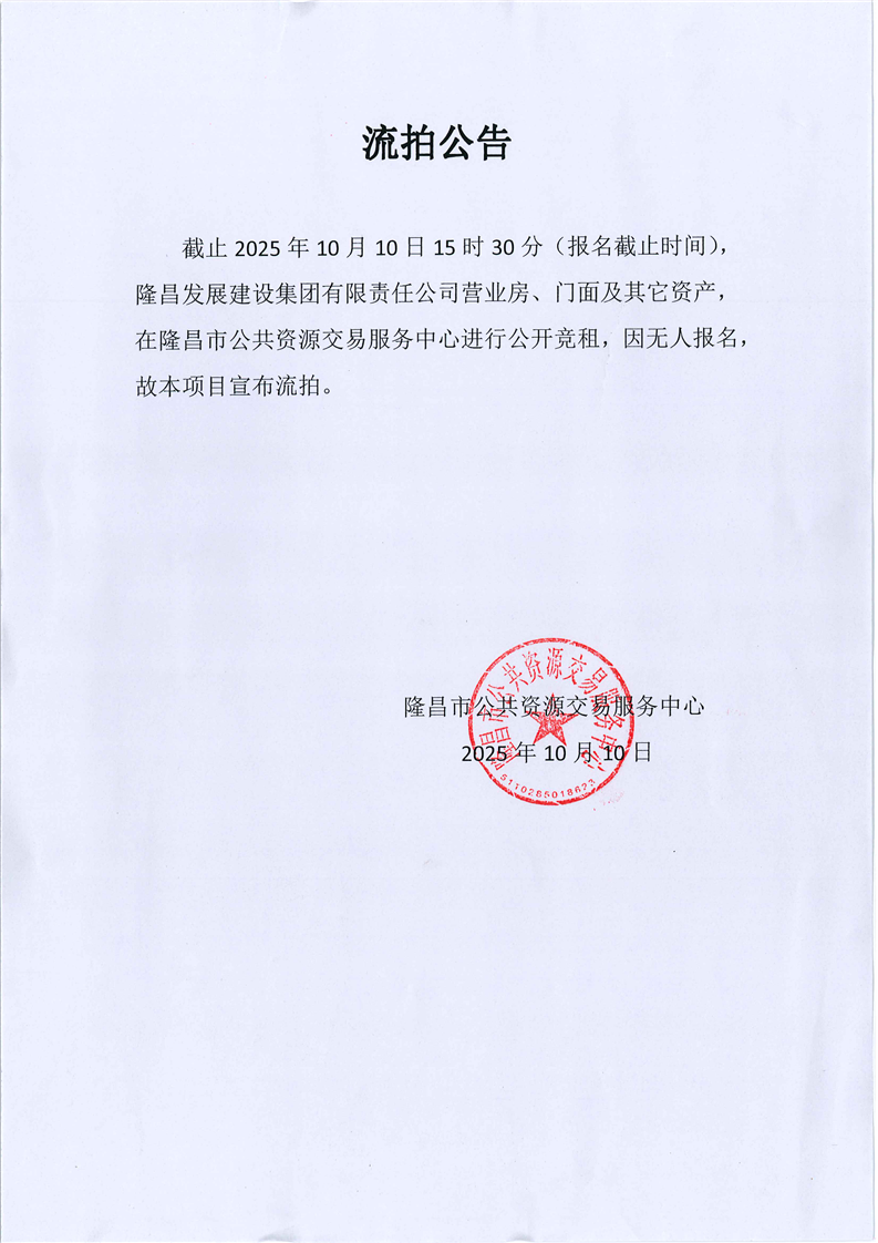 LCJY(2025)C073隆昌发展建设集团有限责任公司 营业房、门面及其它资产竞租流拍公告